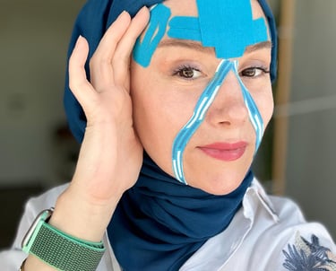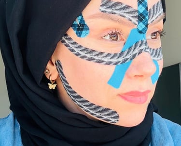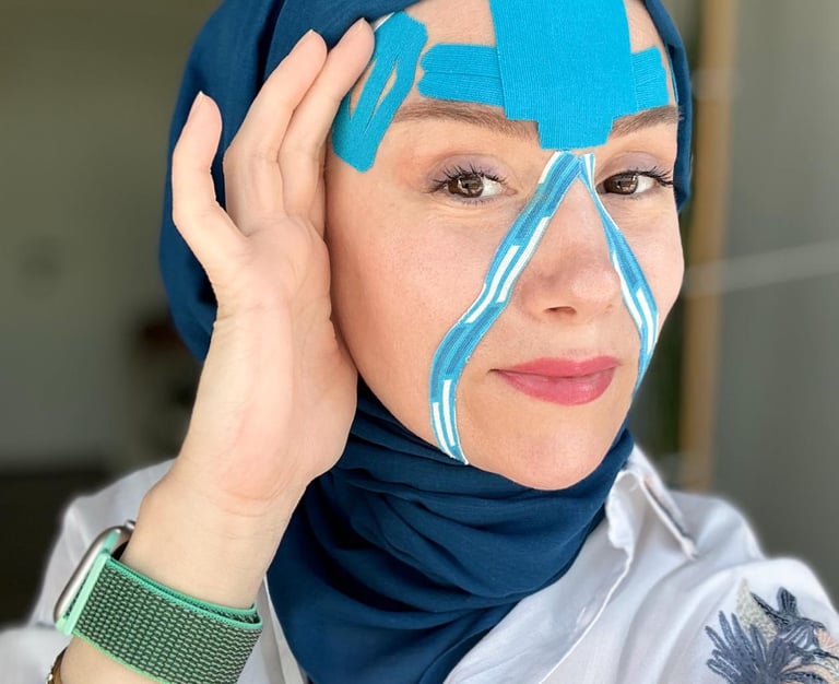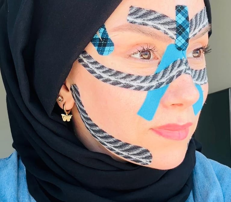 Yüz için kinezyo bantlama, yüz yogasında kullanım alanı olan güzellik odaklı yüz bantlama yüz kaslarını desteklemek, cilt elastikiyetini artırmak ve belirli cilt sorunlarını hafifletmek amacıyla kullanılan bir tekniktir. Kinezyo bantlar, genellikle spor yaralanmaları ve kas problemlerinde kullanılan elastik bantlardır, ancak yüz için uygulandığında farklı faydalar sağlayabilir. İşte yüz için kinezyo bantlamanın bazı yararları:
